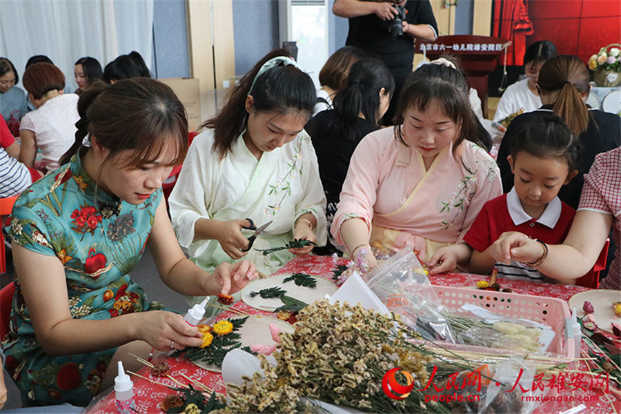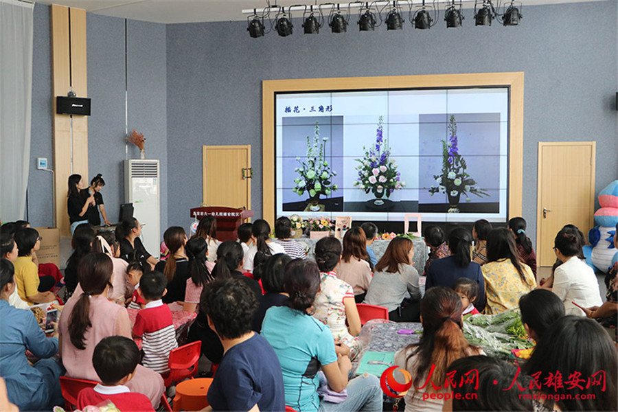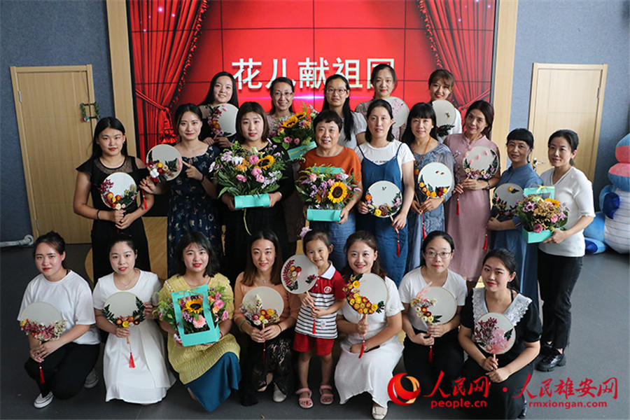 教師節(jié)當(dāng)天,北京市六一幼兒院雄安院區(qū)舉辦“花兒獻祖國,傳承經(jīng)典文化”主題活動,老師和孩子們一起用插花、制作團扇等形式慶祝新中國成立70周年和第35個教師節(jié)。