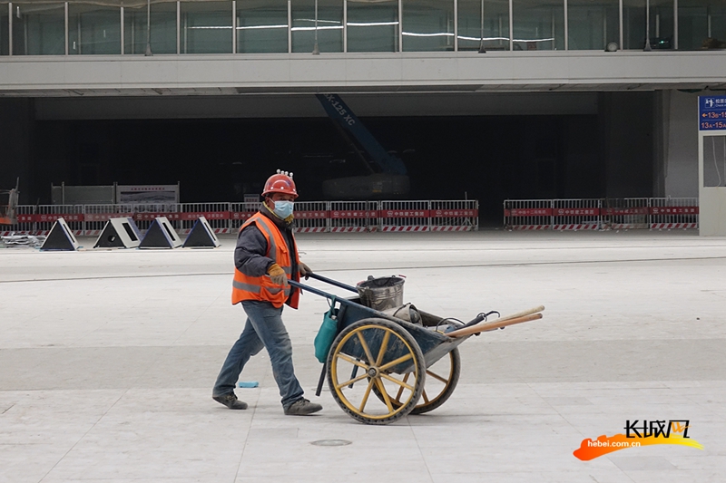 12月16日,雄安站站房內(nèi),吊頂、打磨、清理、裝扮……建設(shè)者們正在緊張地進行裝飾裝修工作,在雄安站開通運營最后的沖刺階段,留下最美的身影。(記者 胥文燕 王守一)