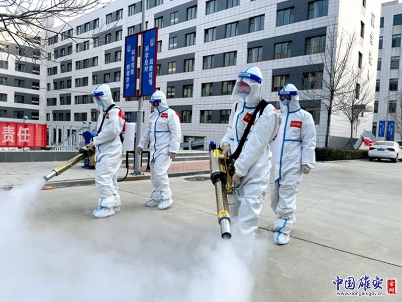 安新縣消防救援大隊隊員正在進行消殺作業(yè)。中國雄安官網(wǎng)發(fā)