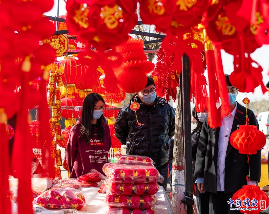 “大紅燈籠、牛年飾品、吉祥春聯(lián),過來瞧,過來看!”“這副對聯(lián)多少錢,牛年特色的窗花,能不能便宜點兒?”2月8日,記者在各大商場、超市、集貿(mào)市場發(fā)現(xiàn),新區(qū)群眾已經(jīng)開啟了“買買買”模式,紅紅火火過大年。今年,不少建設者也選擇留在新區(qū)就地過年,這個春節(jié)也因此有了不一樣的味道。