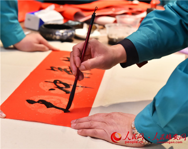 雄安新區(qū)容東片區(qū)B1組團(tuán)安置房項目留雄過年建設(shè)者寫春聯(lián)。