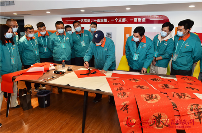雄安新區(qū)容東片區(qū)B1組團(tuán)安置房項目留在雄安過年建設(shè)者寫春聯(lián)。