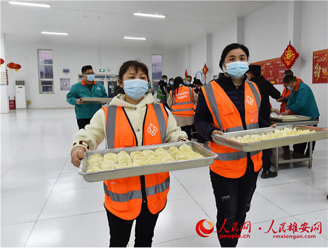 雄安新區(qū)容東片區(qū)B1組團(tuán)安置房項目留雄過年建設(shè)者吃餃子過大年。