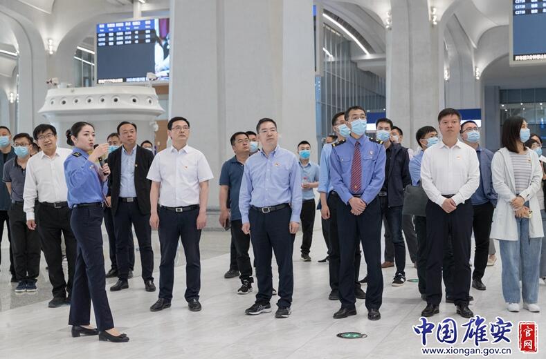 當(dāng)日上午,雄安新區(qū)黨工委副書記、管委會(huì)副主任,機(jī)關(guān)黨委書記萬岷帶隊(duì)前往雄安站進(jìn)行參觀學(xué)習(xí)、實(shí)地考察,并講授專題黨課。萬岷指出,作為雄安新區(qū)開工建設(shè)的第一個(gè)重大基礎(chǔ)設(shè)施項(xiàng)目,雄安站對(duì)于疏解北京非首都功能、便利京津冀人員往來、加快產(chǎn)業(yè)聚集和區(qū)域經(jīng)濟(jì)融合、推動(dòng)雄安新區(qū)建設(shè)和京津冀協(xié)同發(fā)展具有重要戰(zhàn)略意義。