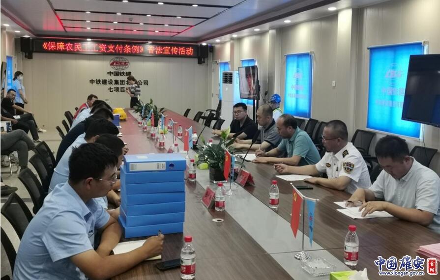 中國(guó)雄安官網(wǎng)7月4日電 為進(jìn)一步推動(dòng)《保障農(nóng)民工工資支付條例》宣傳貫徹工作,營(yíng)造和諧勞動(dòng)用工關(guān)系的氛圍,按照《貫徹實(shí)施<保障農(nóng)民工工資支付條例>執(zhí)法宣傳培訓(xùn)活動(dòng)方案》部署,6月30日,雄安新區(qū)綜合執(zhí)法局和容城縣勞動(dòng)保障監(jiān)察大隊(duì)前往容西片區(qū)C單元安置房及配套設(shè)施項(xiàng)目C1標(biāo)段中鐵十二局集團(tuán)項(xiàng)目部、C3標(biāo)段中鐵建設(shè)集團(tuán)項(xiàng)目部,聯(lián)合開展了執(zhí)法宣傳進(jìn)工地活動(dòng)。
