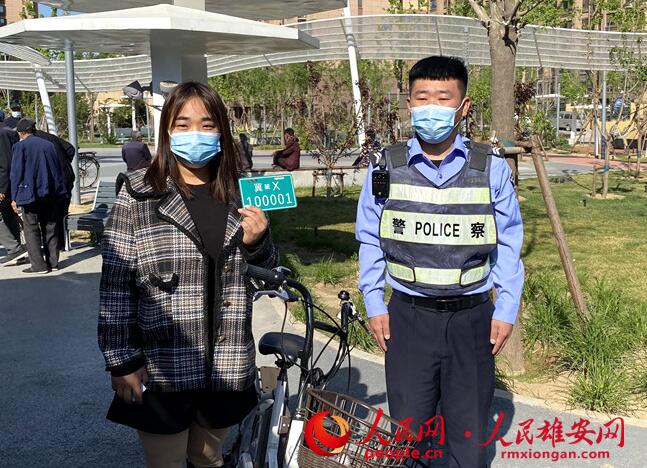 人民網(wǎng)雄安5月1日電 (劉師豪)今天上午,在雄安新區(qū)容東片區(qū)明珠園小區(qū)東側(cè)的電動自行車登記服務(wù)點,王志偉領(lǐng)到了屬于自己的號牌。這也是該服務(wù)點發(fā)放的第一張電動自行車號牌。