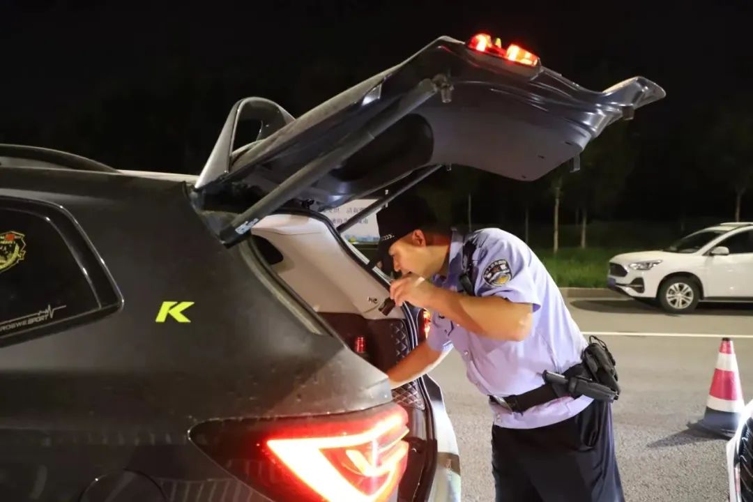 “您好,請配合進行酒精檢測”“您好,請打開后備箱”白洋淀大道治安檢查站旁,交警和巡特警正對過往車輛進行逐一檢查。