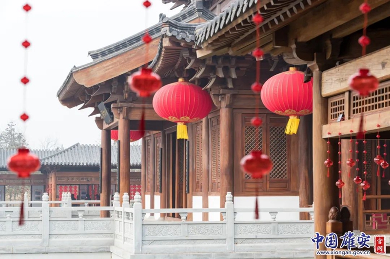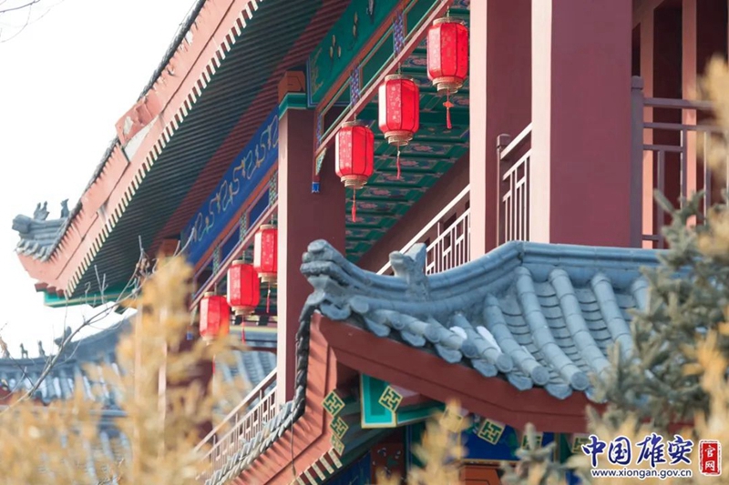 悅?cè)莨珗@南苑仿古建筑掛上了紅燈籠,年味十足。中國雄安官網(wǎng)李鑫 攝