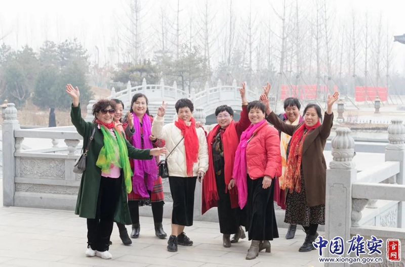 在悅?cè)莨珗@,游客合影留念。中國雄安官網(wǎng)李鑫 攝