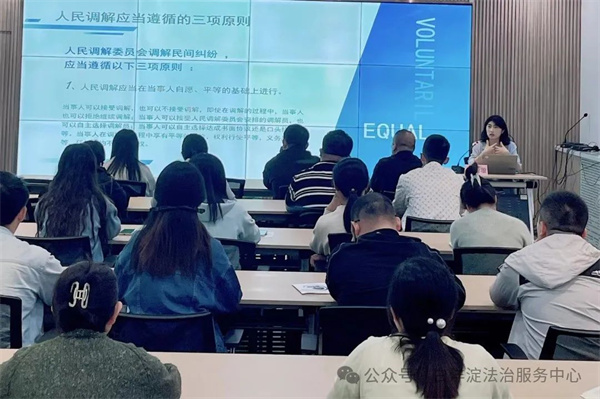 2024年5月7日,首場培訓(xùn)于望淀社區(qū)黨群服務(wù)中心開展,培訓(xùn)對象為東西里社區(qū)、胡村社區(qū)及望淀社區(qū)書記、副書記、社工、樓門長等參與社區(qū)調(diào)解工作的骨干成員。