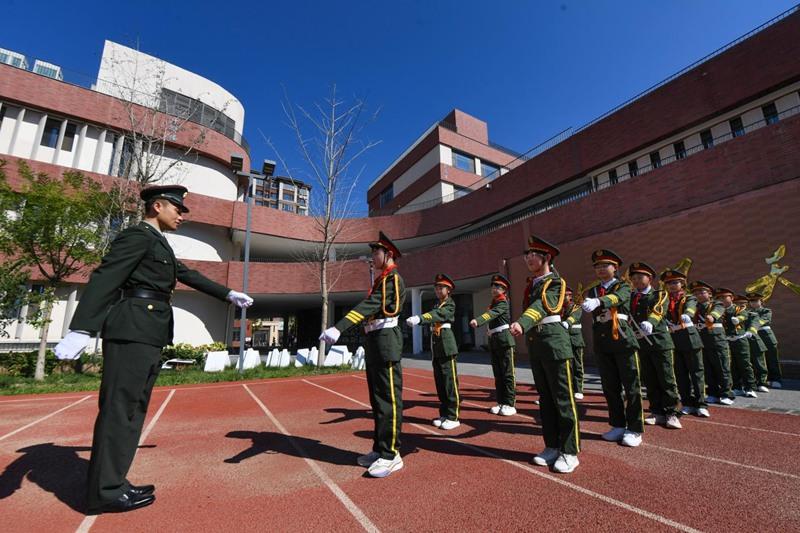 在雄安容和樂民小學(xué),退役軍人與學(xué)校國旗護(hù)衛(wèi)隊(duì)一起舉行莊嚴(yán)的升國旗儀式。學(xué)生們隨后集體參觀國防特種作業(yè)技術(shù)車輛,退役軍人組織學(xué)校師生開展軍事題材互動(dòng)游戲。