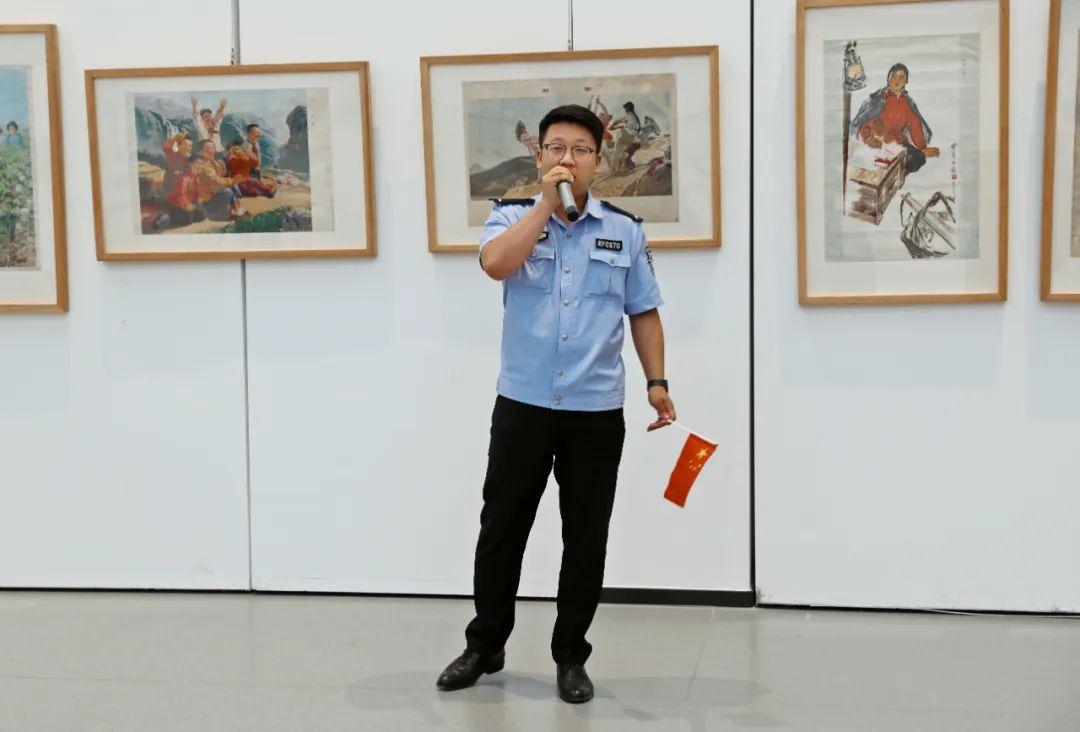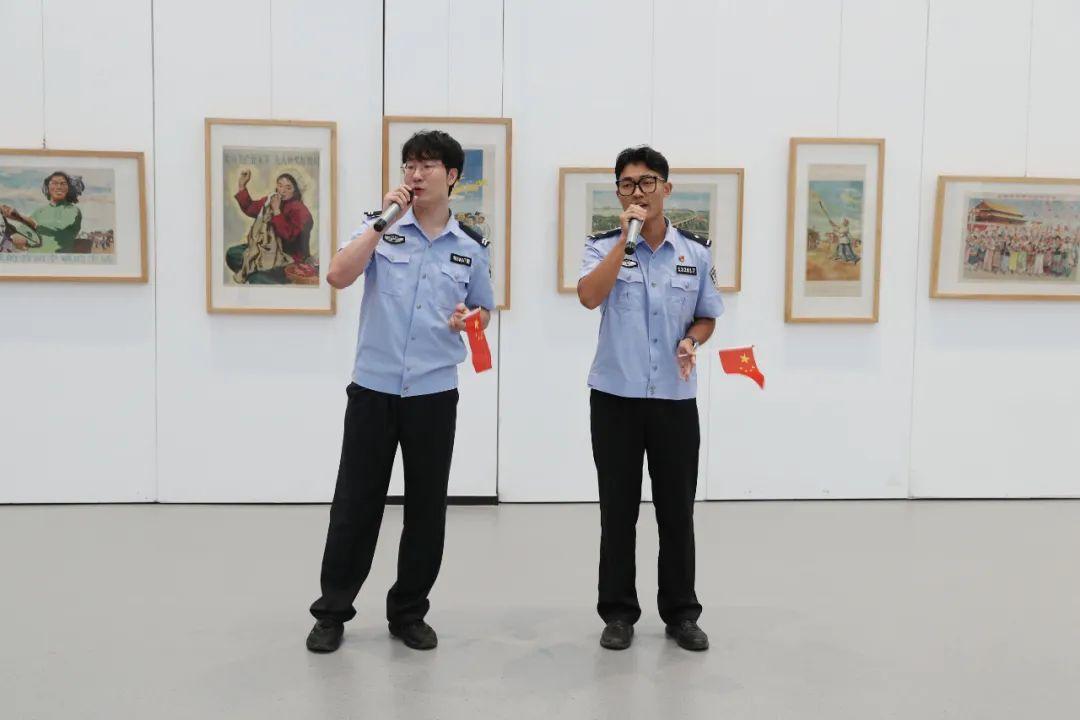 此次展覽主要展示反映新中國成立以來一系列重大歷史事件宣傳畫、年畫,以及描繪新區(qū)建設(shè)發(fā)展的部分美術(shù)作品,百余幅作品如同歷史畫卷般在大家眼前徐徐展開。民輔警穿梭其間,仿佛穿越時(shí)空隧道,親眼見證了新中國從百廢待興到繁榮昌盛的壯麗圖景,一筆一劃,都仿佛是祖國前進(jìn)的鏗鏘足音,在大家心中激蕩起了強(qiáng)烈的共鳴。大家或駐足凝視,或低語交流,分享著各自對(duì)新中國發(fā)展歷程的感慨與認(rèn)識(shí)。