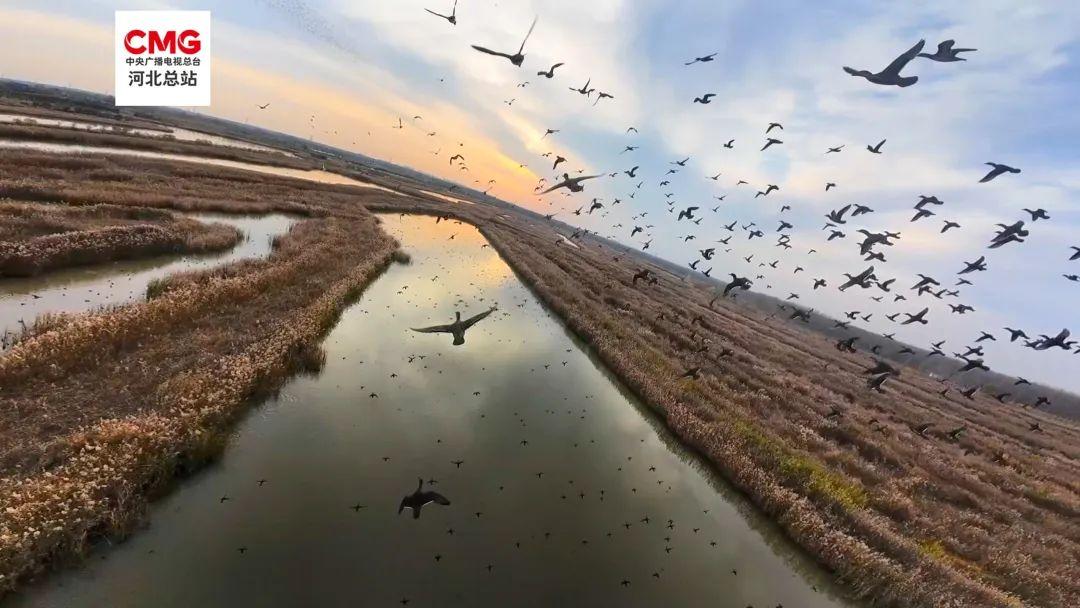 初冬時節(jié),在雄安新區(qū)白洋淀的孝義河口濕地,上萬只的雁鴨類候鳥在此棲息覓食,鳳頭鸊鷉不斷潛水捉魚,積攢往南遷徙的體力,旁邊的綠頭鴨則在水面嬉戲歇腳,傍晚時分,隨著陣陣鳴叫聲,萬鳥齊飛,天空中鳥浪翻滾,不斷變換著形態(tài),為集體遷徙南下度過寒冬做著最后的準備。