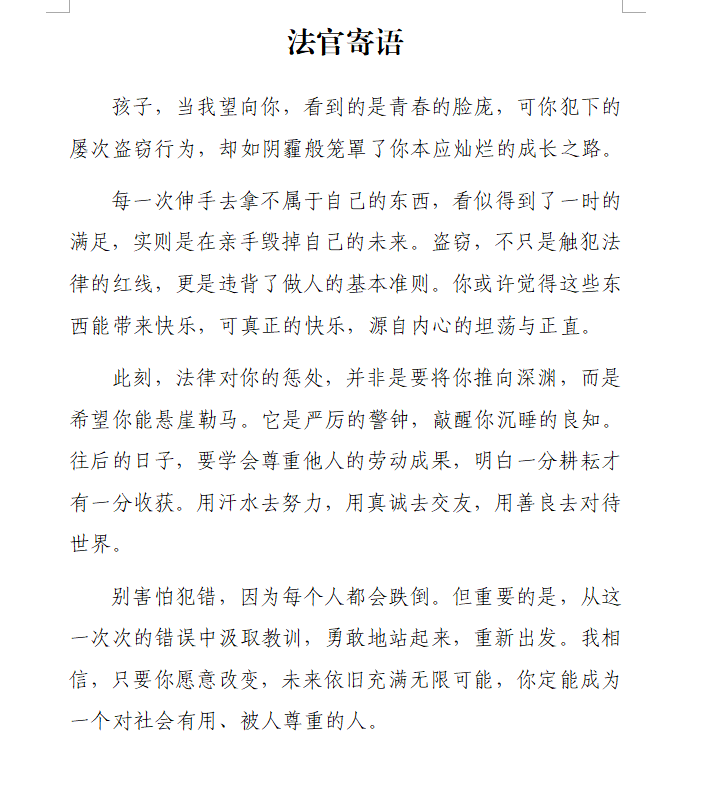 判決送達(dá)并生效后,被告人坦然接受判決結(jié)果。該院隨即對(duì)被告人進(jìn)行了回訪,對(duì)案卷進(jìn)行了封存,并與孩子及家長(zhǎng)約定好下一次的回訪見面時(shí)間。