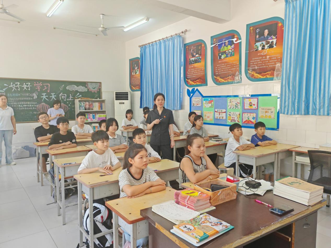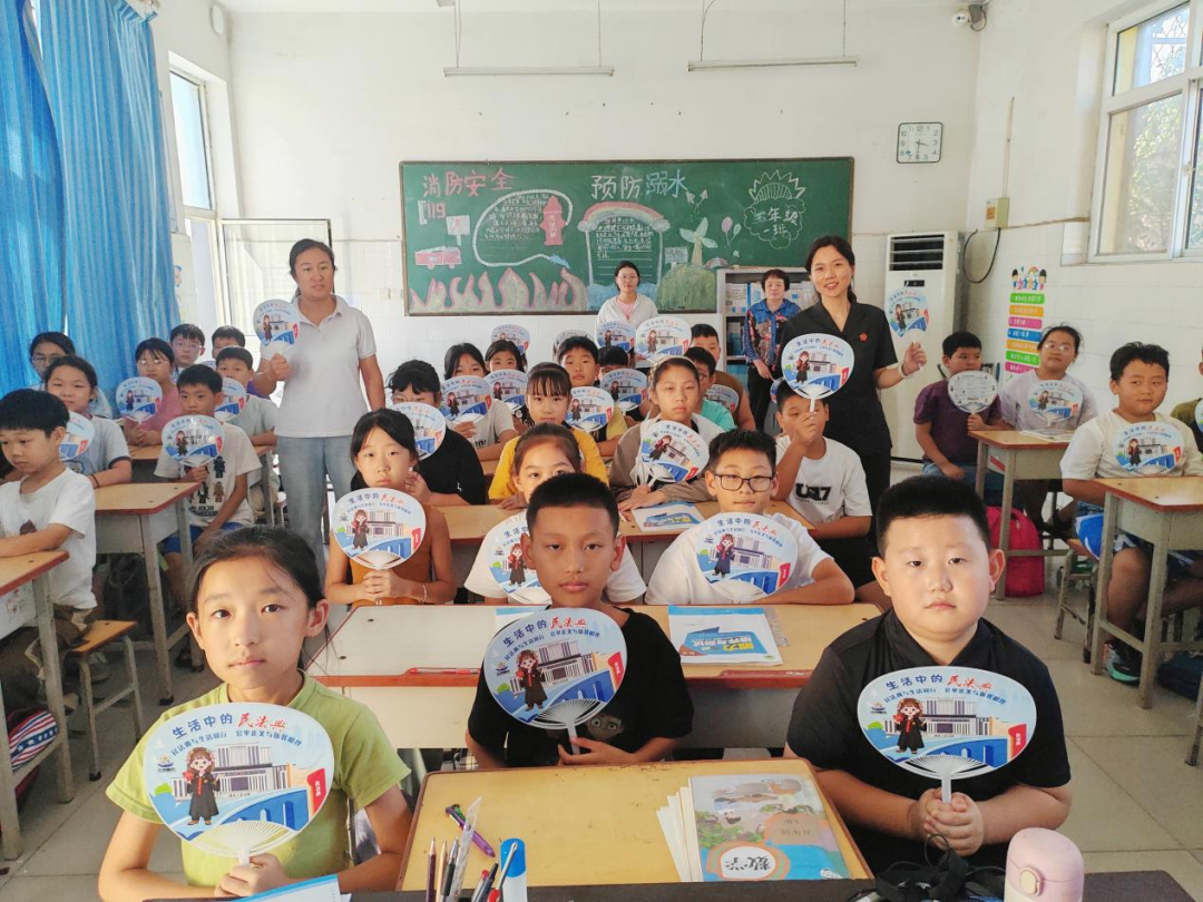 “說(shuō)不!”“告訴老師!”“尋求幫助!”——孩子們舉起小手爭(zhēng)先恐后地回答,在歡聲笑語(yǔ)中學(xué)會(huì)了自我保護(hù)的知識(shí)。除了積極的互動(dòng),現(xiàn)場(chǎng)還為每位同學(xué)發(fā)放了未成年人司法保護(hù)品牌“雄小荷”主題宣傳扇。小小的扇子不僅送來(lái)清涼,更將法治清風(fēng)送入校園,將法治的種子播撒在每個(gè)孩子心中。