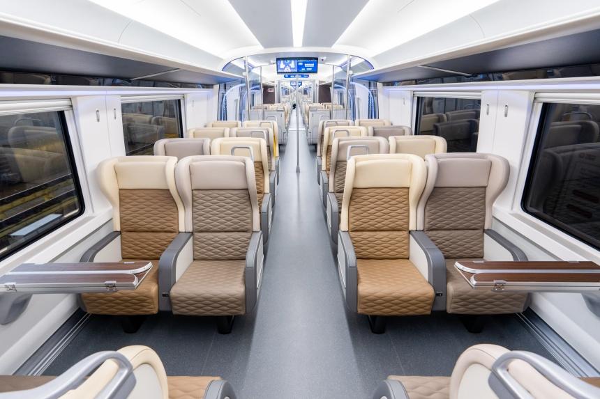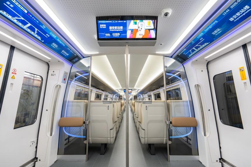 京雄快線D型市域動車組車廂內(nèi)部。雄安軌道公司供圖