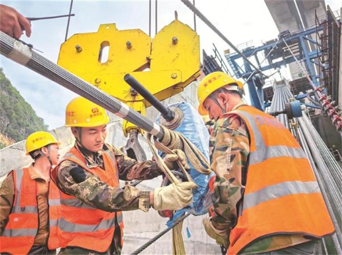 6月6日,經(jīng)過8小時(shí)的牽引架設(shè),由貴州交建集團(tuán)所屬橋梁集團(tuán)承建的在建世界第一高橋——花江峽谷大橋第一條智慧主纜索股成功安裝,實(shí)現(xiàn)在2378米長的主纜上采用光柵光纖(復(fù)合碳纖維絲)進(jìn)行應(yīng)力監(jiān)測,該應(yīng)力應(yīng)變監(jiān)測技術(shù)在大跨徑懸索橋上的運(yùn)用屬國際首創(chuàng),邁出了懸索橋智能健康監(jiān)測創(chuàng)新賦能的關(guān)鍵一步。