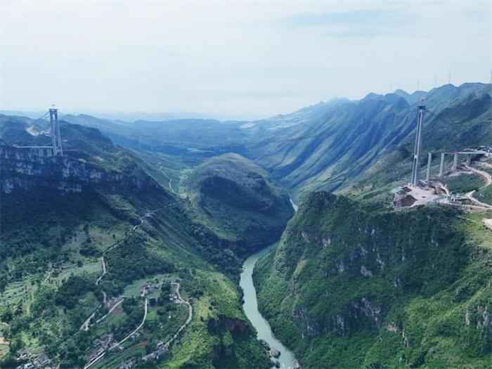 據(jù)了解,六安高速花江峽谷大橋是貴州省橋旅融合示范性項(xiàng)目工程,大橋主橋跨徑1420米,橋面至水面高度625米,建成后,花江峽谷大橋不僅主橋跨徑居山區(qū)橋梁跨徑世界第一,更將成為新的山區(qū)峽谷世界第一高橋。同時(shí),將通過建設(shè)“橋梁觀光+橋梁運(yùn)動(dòng)體驗(yàn)+旅游服務(wù)”為一體的橋旅融合綜合體,努力打造貴州橋旅融合3.0樣板。
