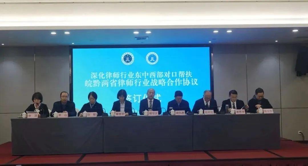 為進(jìn)一步推動(dòng)律師行業(yè)東中西部對(duì)口幫扶機(jī)制走深走實(shí),近日,安徽省、貴州省《關(guān)于深化律師行業(yè)東中西部對(duì)口幫扶 皖黔兩省律師行業(yè)戰(zhàn)略合作協(xié)議》簽訂儀式在貴陽舉行。