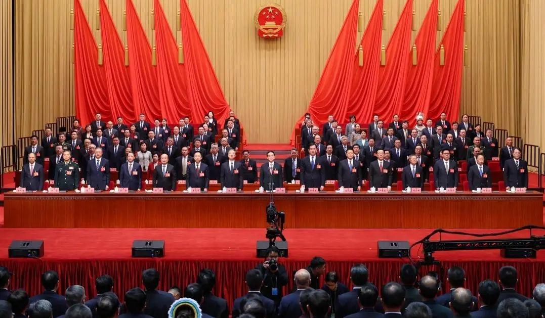 大會(huì)在雄壯的國(guó)歌聲中勝利閉幕。閉幕會(huì)結(jié)束后,舉行了憲法宣誓儀式。
