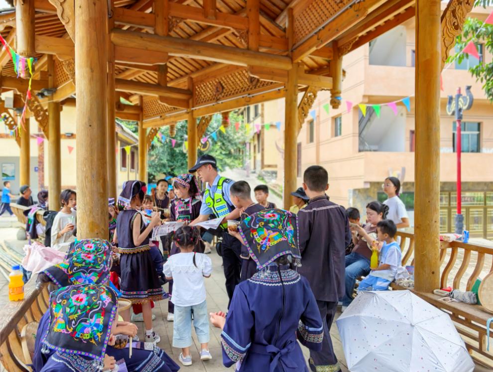 近日,貴州省六盤水市六枝特區(qū)2025年全國夏季“村晚”示范點(diǎn)展示活動之享“村趣”傳統(tǒng)民俗體驗(yàn)活動在牂牁鎮(zhèn)自強(qiáng)廣場開展,活動引來周邊上百群眾和游客前來觀看參加。借此機(jī)會,六枝特區(qū)公安局交通警察大隊(duì)在做好道路交通安保工作的同時,以該民俗活動為契機(jī),結(jié)合夏季交通安全出行特點(diǎn),組織執(zhí)勤交警走進(jìn)民俗活動現(xiàn)場,開展農(nóng)村夏季交通安全宣傳。