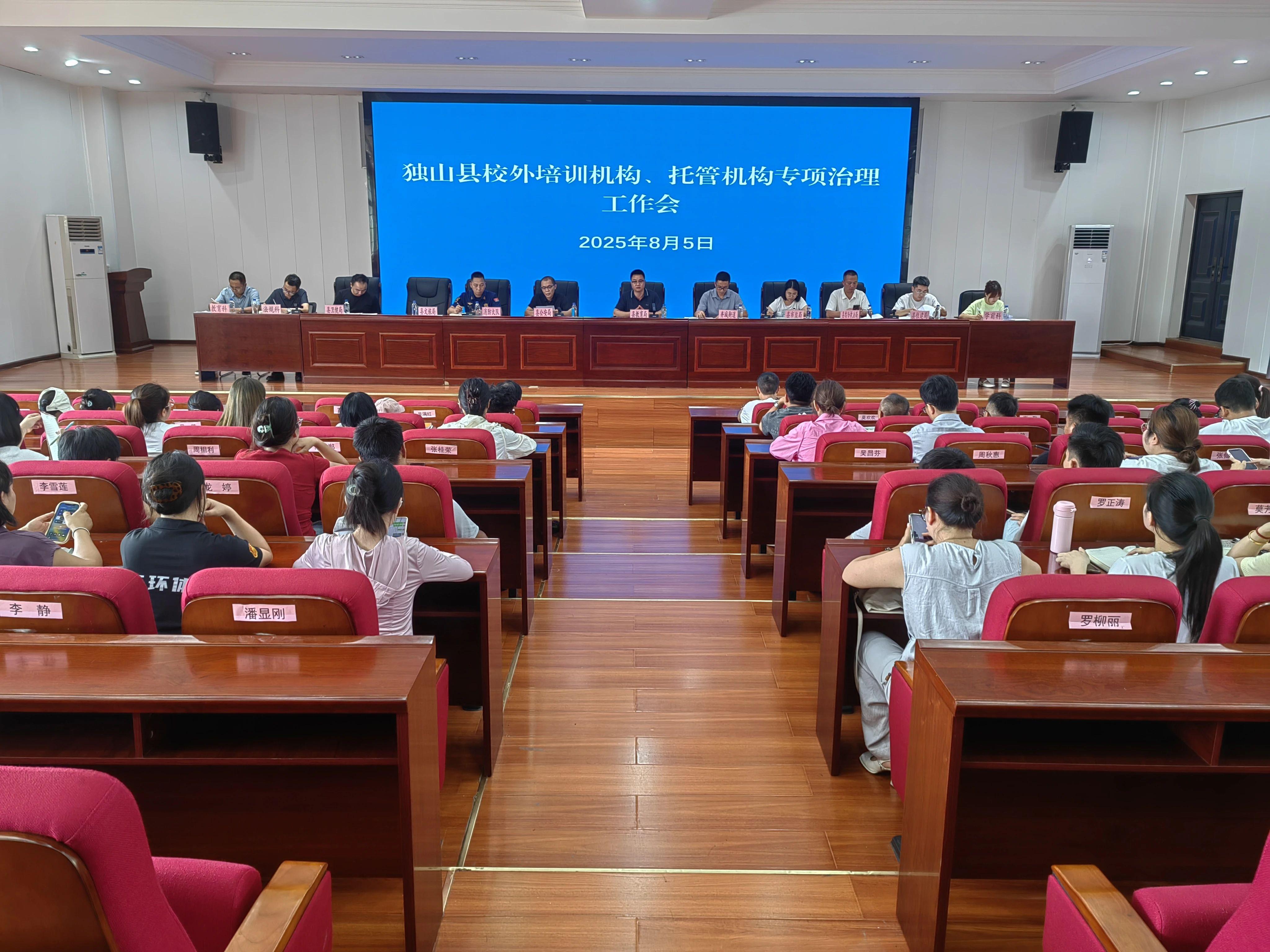 為深入貫徹落實(shí)國家“雙減”政策及相關(guān)法律法規(guī),切實(shí)規(guī)范校外培訓(xùn)與托管服務(wù)市場(chǎng)秩序,保障廣大學(xué)生健康安全與合法權(quán)益,近日,貴州省黔南州獨(dú)山縣教育局組織召開校外培訓(xùn)機(jī)構(gòu)、托管機(jī)構(gòu)專項(xiàng)治理工作會(huì)。縣教育局、縣市監(jiān)局、縣文旅局、縣衛(wèi)健局、縣住建局、縣綜合執(zhí)法局、縣消防救援大隊(duì)、井城街道等多部門分管負(fù)責(zé)人,以及全縣所有校外培訓(xùn)機(jī)構(gòu)、托管機(jī)構(gòu)負(fù)責(zé)人共100余人參會(huì)。