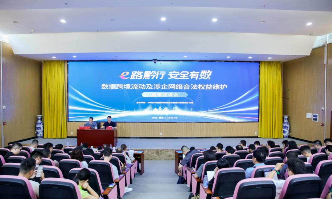 近日,貴州省委網(wǎng)信辦組織開展“e路黔行˙安全有數(shù)”之數(shù)據(jù)跨境流動及涉企網(wǎng)絡合法權(quán)益維護政策宣講會。各市(州)、省直相關(guān)部門有關(guān)負責同志和有關(guān)企業(yè)數(shù)據(jù)安全管理部門負責人共100余人參加。