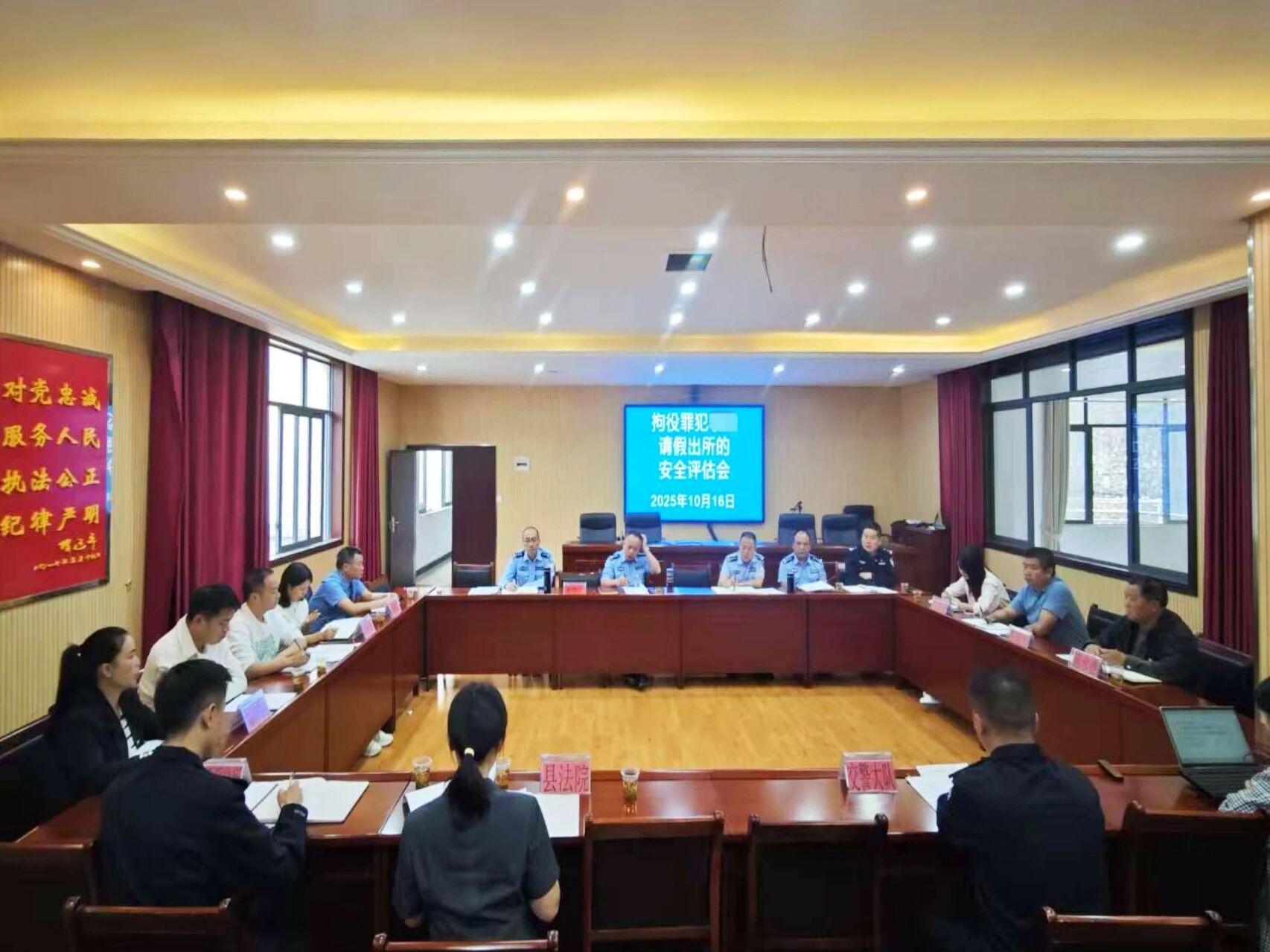 圖為拘役罪犯李某請假出所安全評估會。