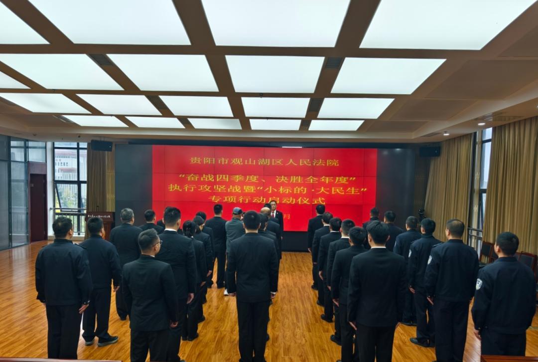 為進(jìn)一步認(rèn)清當(dāng)前執(zhí)行工作形勢(shì)、正視任務(wù)差距、堅(jiān)決兌現(xiàn)既定目標(biāo),確保全年度執(zhí)行工作任務(wù)順利完成,近日,貴州省貴陽(yáng)市觀山湖區(qū)人民法院正式打響“奮戰(zhàn)四季度?決勝全年度”執(zhí)行攻堅(jiān)戰(zhàn)。