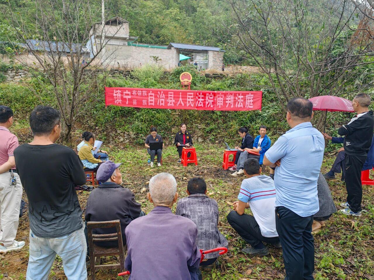 近日,貴州省安順市鎮(zhèn)寧自治縣人民法院黃果樹環(huán)境保護法庭創(chuàng)新審理模式,將一起土地承包經(jīng)營權(quán)糾紛案件的庭審現(xiàn)場“搬”至案涉爭議土地之上。村干部、村民代表共同參與現(xiàn)場勘察,并全程旁聽庭審,讓司法公正在田間地頭可見可感。