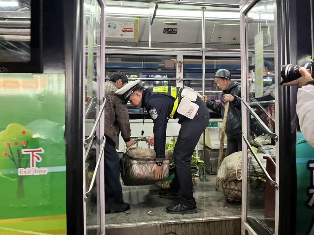 在每日運營前,民警與當(dāng)班司機對乘客攜帶的貨物擺放進行檢查,并對乘客放置的蔬菜、農(nóng)用工具等物品的擺放進行固定,防止行駛中傾倒或滑動,最大限度消除在運營過程中可能出現(xiàn)的安全隱患。