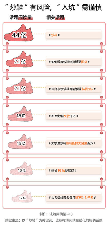 微博話題“揭秘95后炒鞋群”的相關(guān)閱讀量達到了1.9億,其中,有些95后炒鞋者靠“炒鞋”一夜暴富,也有不少炒鞋者虧得血本無歸,甚至有炒鞋者卷入經(jīng)濟糾紛或涉嫌違法。