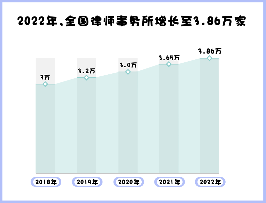 據(jù)司法部發(fā)布的官方數(shù)據(jù)顯示,截至2022年底,全國執(zhí)業(yè)律師已達(dá)65.16萬多人,全國律師事務(wù)所數(shù)量已經(jīng)增長至3.86萬家,我國律師隊(duì)伍不斷壯大。