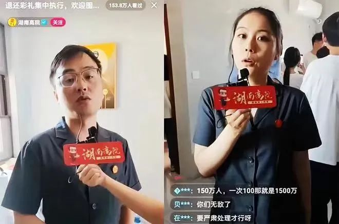 5月8日,湖南省高級人民法院的官方抖音賬號“湖南高院”開啟了“退還彩禮”集中執(zhí)行直播,引發(fā)網(wǎng)民圍觀。負(fù)責(zé)此次案件集中執(zhí)行的是寧鄉(xiāng)市人民法院執(zhí)行局。直播中,執(zhí)行人員化身主播解說退還彩禮的執(zhí)行案件,并實時回答網(wǎng)民提問,直播間熱度一度達到274萬人(次)。多數(shù)網(wǎng)民對此次活動表示支持,認(rèn)為相關(guān)形式值得推廣。