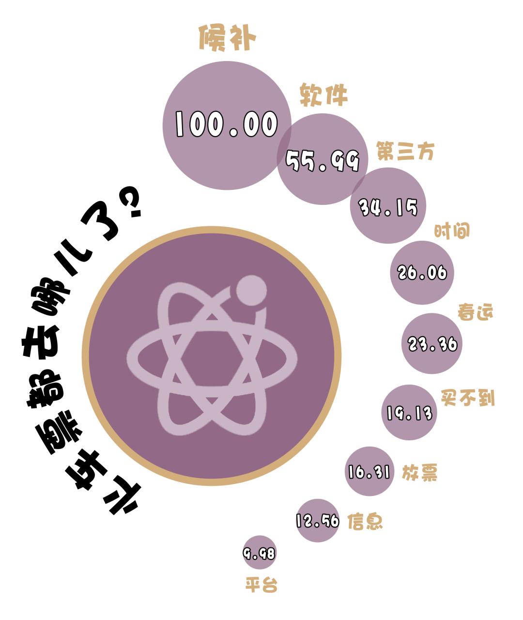 (制作:法治網(wǎng)輿情中心 數(shù)據(jù)來(lái)源:收集嗶哩嗶哩《科技黃牛大戰(zhàn)12306,火車票都去哪了?》視頻下3163條一級(jí)評(píng)論,對(duì)選取的信息進(jìn)行數(shù)據(jù)清洗及自然語(yǔ)言處理,將熱度最高的詞語(yǔ)規(guī)定為100)