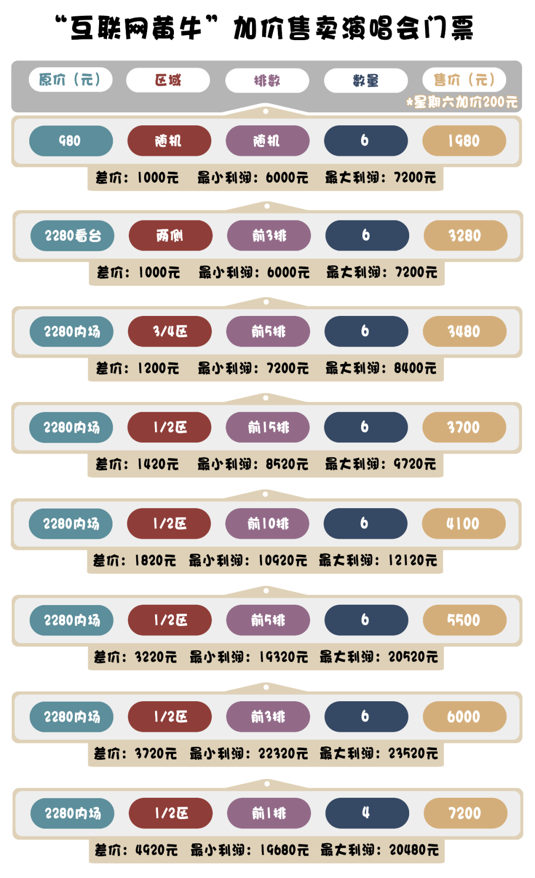 盡管如此,對(duì)于背后有二級(jí)資源的“互聯(lián)網(wǎng)黃?!眮?lái)說(shuō),售賣“黃?!逼辈⒉皇请y事。以某位在廣東地區(qū)深受歡迎的歌手為例,其預(yù)計(jì)在今年11月舉行多場(chǎng)個(gè)人演唱會(huì),但有粉絲表示,演唱會(huì)的門票仍“一秒售罄”。某二手置物平臺(tái)數(shù)據(jù)顯示,演唱會(huì)門票并非全部售空,部分門票流入“互聯(lián)網(wǎng)黃?!敝?,原價(jià)為2280元的內(nèi)場(chǎng)票,因位置不同被炒至3280元至7200元不等。此外,若趕上演唱會(huì)在星期六舉辦,買家還需要額外支付200元的“熱門時(shí)段搶票費(fèi)用”。面對(duì)“一人一證”的入場(chǎng)機(jī)制,“互聯(lián)網(wǎng)黃?!钡纳馑坪醪⑽词艿接绊?。
