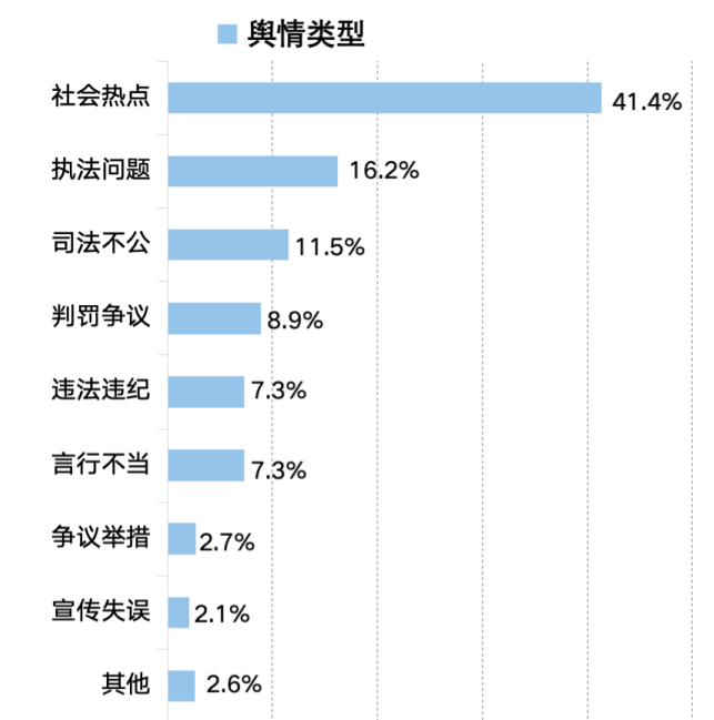 二、輿情起因:執(zhí)法司法活動(dòng)最受關(guān)注 突發(fā)案事件輿情烈度高