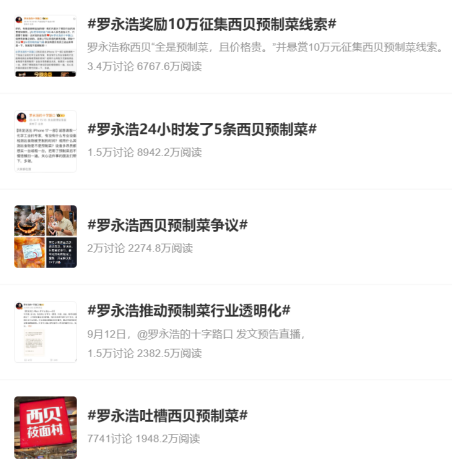 一、羅永浩微博吐槽西貝“幾乎全是預(yù)制菜”