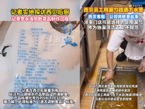9月12日起,中國(guó)藍(lán)新聞、百姓315等多家媒體紛紛實(shí)地直播探訪各地西貝門(mén)店,先后曝出西貝門(mén)店后廚使用電磁爐而無(wú)明火灶;餐品原材料使用多種保質(zhì)期數(shù)月以上的冷凍食材,包括用于制作兒童餐的“速凍西藍(lán)花”、生產(chǎn)自2024年9月的“凍羊腿”、含食品添加劑的“凍海鱸魚(yú)”;部分餐品使用轉(zhuǎn)基因大豆油等后廚情況。此外媒體直播還顯示,西貝員工疑似使用廚具漏勺打撈疏通下水道。