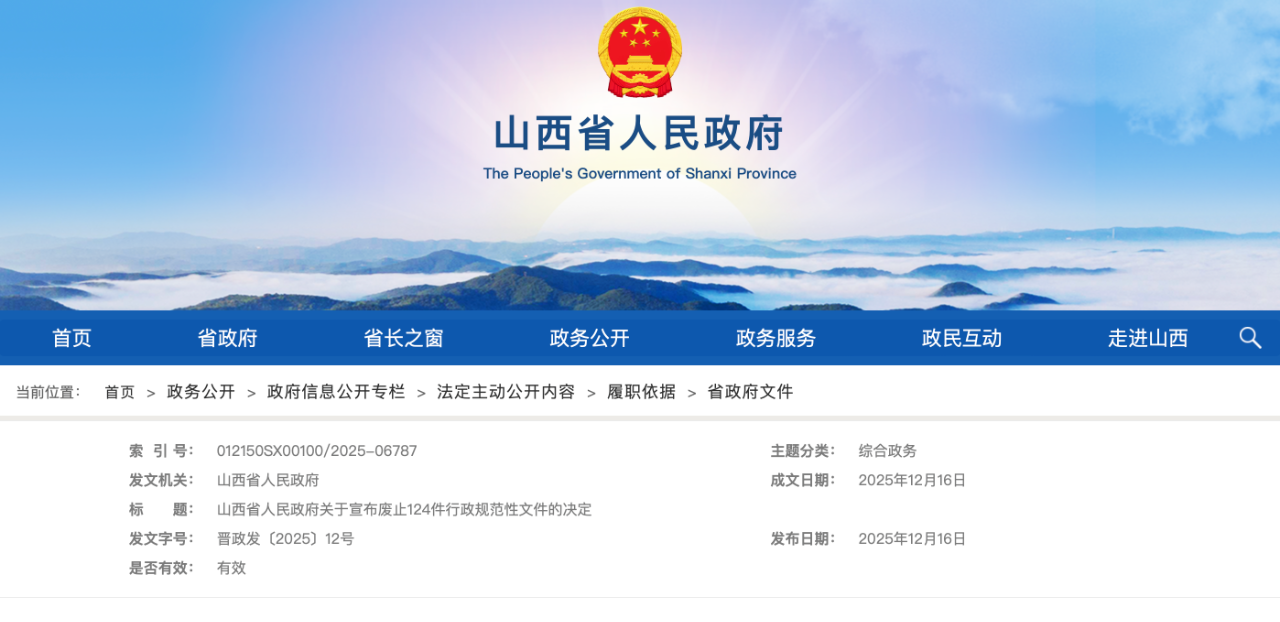 12月16日,《山西省人民政府關于宣布廢止124件行政規(guī)范性文件的決定》公布,其中,2020年8月17日發(fā)布、同年10月1日起正式實施的《山西省人民政府關于禁止生產、經營、儲存、運輸和燃放煙花爆竹的通告》被納入廢止目錄,該通告自12月16日起停止執(zhí)行,不再作為行政管理依據(jù)。