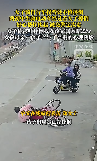 2月19日,據(jù)“中安在線”等媒體報道,2025年3月,福建莆田一老人在騎自行車拐彎時摔倒,兩名騎電動車路過的初中生看見后,主動停車上前攙扶。在后續(xù)責任認定中,交警認定該事件為“無接觸事故”:老人負主要責任,女生因騎行未靠右、轉(zhuǎn)彎未讓直行承擔次要責任。事后,老人以“被嚇倒”為由起訴索賠22萬元。女生家長認為女兒是出于善意才伸出援手,如今卻因助人行為面臨追責,不僅給家庭帶來經(jīng)濟壓力,更給孩子帶來“嚴重的心理陰影”。另據(jù)江西電視臺《都市現(xiàn)場》報道,該案將于2月26日在莆田市城廂區(qū)人民法院靈川法庭開庭審理。