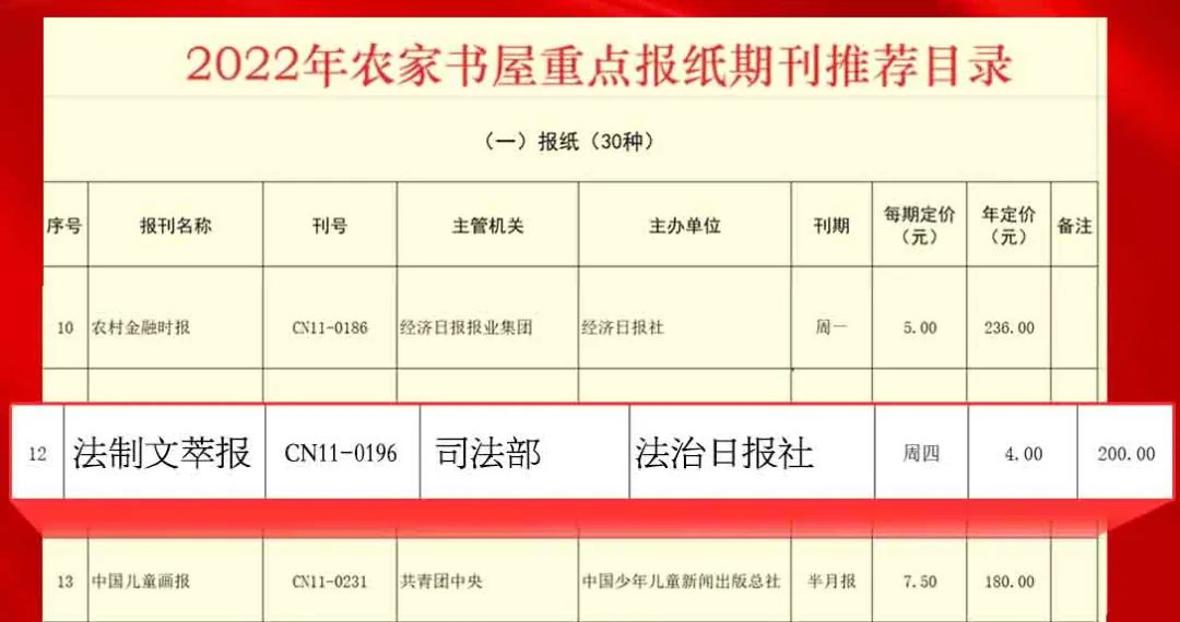 法治鄉(xiāng)村建設(shè)是全面依法治國(guó)的重要組成部分,是推進(jìn)農(nóng)村基層治理體系和治理能力現(xiàn)代化的必然要求,是實(shí)現(xiàn)鄉(xiāng)村振興的基礎(chǔ)與保障。為深入推進(jìn)鄉(xiāng)村振興和法治鄉(xiāng)村建設(shè),充分運(yùn)用好農(nóng)家書(shū)屋這一重要陣地,成功入選《2022年農(nóng)家書(shū)屋重點(diǎn)出版物推薦目錄》、成為該目錄中唯一法治類報(bào)紙的《法制文萃報(bào)》即將舉辦“加強(qiáng)法治鄉(xiāng)村建設(shè),助推鄉(xiāng)村振興發(fā)展”系列作品征集活動(dòng)。此次活動(dòng),由法治日?qǐng)?bào)社指導(dǎo),中央重點(diǎn)新聞網(wǎng)站法治網(wǎng)提供平臺(tái)支持。