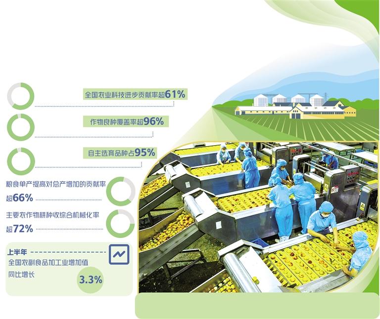 農(nóng)業(yè)農(nóng)村部最新數(shù)據(jù)顯示,全國農(nóng)業(yè)科技進步貢獻率超過61%,作物良種覆蓋率超過96%,自主選育品種占95%,糧食單產(chǎn)提高對總產(chǎn)增加的貢獻率超過66%,主要農(nóng)作物耕種收綜合機械化率超過72%,農(nóng)業(yè)科技已成為引領農(nóng)業(yè)農(nóng)村現(xiàn)代化的強勁引擎。10年間,我國農(nóng)業(yè)科技水平已從世界第二方陣邁入第一方陣,處于發(fā)展中國家領先地位。