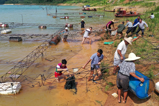 湖南省資興市加強(qiáng)跨部門協(xié)作,聯(lián)合實(shí)施東江湖網(wǎng)箱養(yǎng)殖退水上岸工程和清船、清網(wǎng)、清江、清庫退捕禁捕“四清四無”專項行動。