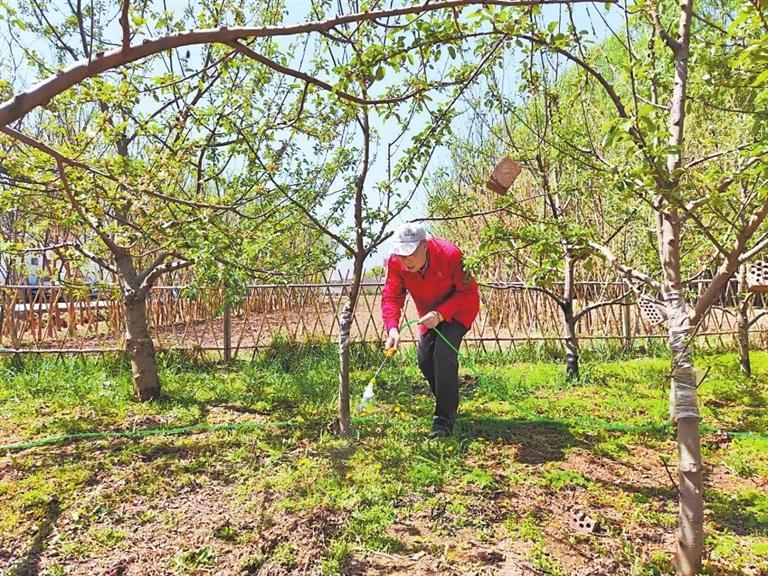 村民李鳳山在自家果園勞作。記者 于曉明 攝