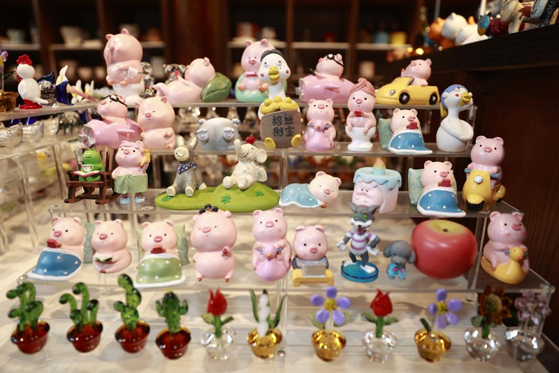 陳家鋪村的“今有光”鄉(xiāng)村創(chuàng)意空間里,擺滿了色彩明快的陶瓷器皿、原生態(tài)木制玩偶及以松陽(yáng)為元素的創(chuàng)意周邊,引得不少游客前來(lái)拍照打卡。