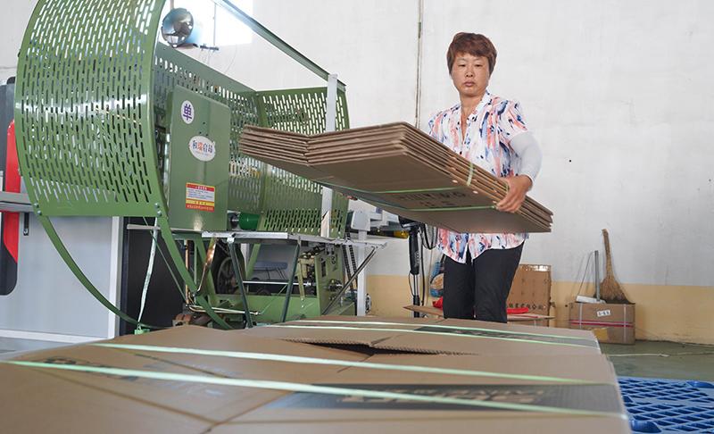 7月6日,山東省鄒平市明集鎮(zhèn)張辛村等3個(gè)村聯(lián)合建起的富濱紙箱廠,工人在生產(chǎn)包裝紙箱。