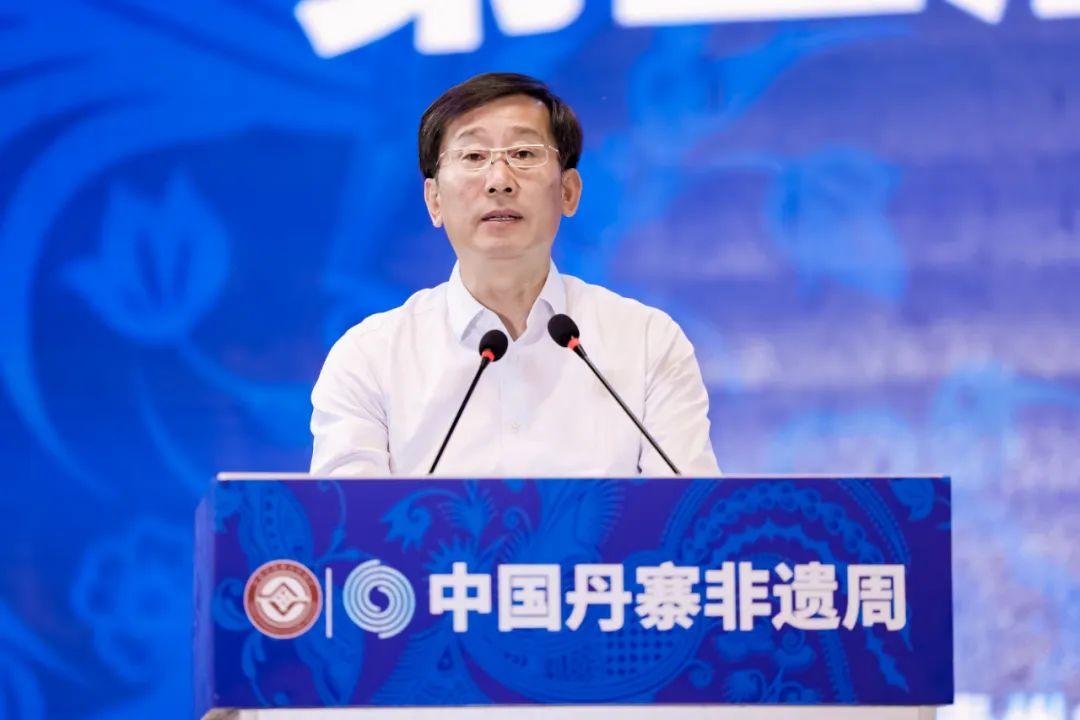 7月21日晚,第三屆中國丹寨非遺周在貴州省黔東南州丹寨縣丹寨萬達小鎮(zhèn)開幕。全國人大教科文衛(wèi)委員會主任委員、文化和旅游部原黨組書記、部長雒樹剛出席。文化和旅游部副部長饒權講話。中國非物質文化遺產(chǎn)保護協(xié)會會長王曉峰,貴州省人大常委會副主任、省總工會主席桑維亮,萬達集團總裁齊界致辭。貴州省人大常委會黨組成員于杰,貴州省委宣傳部副部長、省文化和旅游廳廳長孫含欣,州委書記、州長安九熊,州人大常委會主任湯越強,州政協(xié)主席潘玉鳳,州領導譚海、崔鵬、龍黔清、王建華,亞洲財富論壇執(zhí)行主席、秘書長韓劍鋒出席開幕式。中國非物質文化遺產(chǎn)保護協(xié)會副會長兼秘書長張雅芳主持開幕式。