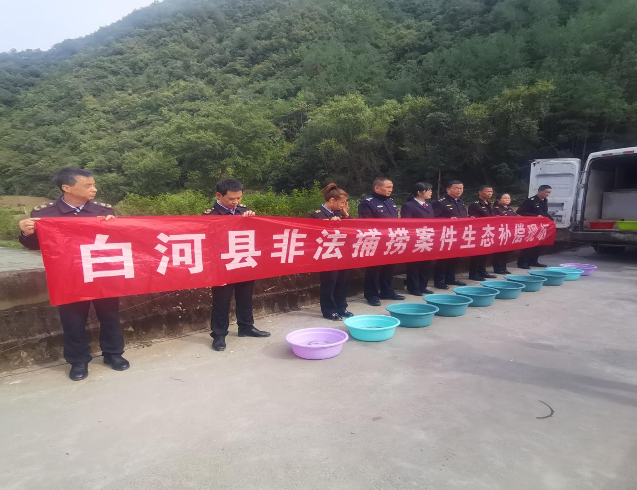 為助力漢江流域生態(tài)環(huán)境修復(fù),營造保護生態(tài)環(huán)境的良好氛圍,近日,陜西省安康市白河縣人民檢察院、縣公安局、縣農(nóng)業(yè)農(nóng)村局在漢江支流白石河河段,聯(lián)合開展以“白河縣非法捕撈案件生態(tài)補償”為主題的魚苗增值放流活動,督促兩起非法捕撈水產(chǎn)品案的涉案當(dāng)事人履行生態(tài)修復(fù)義務(wù)。