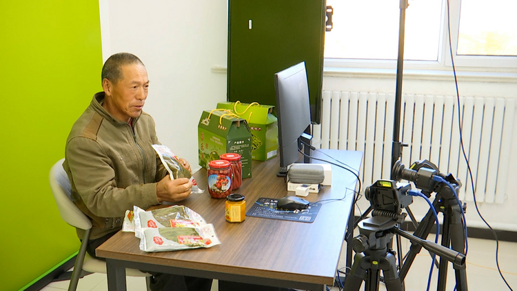 村民當起“帶貨主播”,在線上向消費者們介紹當?shù)赝撂禺a(chǎn)(承德廣播電視臺供圖)